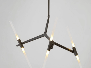 Черная люстра в индастриал стиле со стеклянными матовыми плафонами для внутреннего освещения. Регулируемая форма и размер корпуса.