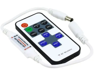 В комплекте с диммером поставляется пульт дистанционного управления. Он оснащён одиннадцатью кнопками и использует радиосигнал для передачи информации. Изделие имеет один канал и рассчитано на одну зону управления.