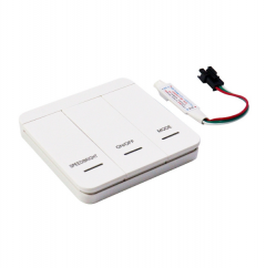 Контроллер LEDTech RUN RF- панель 3 клавиши - предназначен для создания светодинамических эффектов и управления яркостью/скоростью адресных одноцветных (Single color) светодиодных лент с чипами WS2811, ТМ1903, GS8208/2303. Оснащен дистанционной панелью управления с 3 клавишами - скорость/яркость, вкл/выкл и переключение режимов. Использование панели возможно в радиусе действия 15 метров. К контроллеру можно подключить до 2048 пикселей. Сама сенсорная панель работает от батарейки (не идет в комплекте) и соединяется с контроллером по радио сигналу, соответственно не требует проводки и ее можно разместить в любом месте (стена, полка, в шкафу)