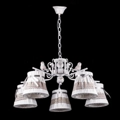 Люстра на цепи в стиле прованс идеально подойдет для светлого интерьера гостиной или спальни. Каркас люстры изготовлен из прочного, но легкого сплава металлов, окрашен в белый цвет с золотым патинированием, что придает эффект искусственного состаривания. Декоративные элементы выполнены в виде птиц из гипса окрашены в цвет каркаса. Текстильные абажуры легко снимаются для очистки.