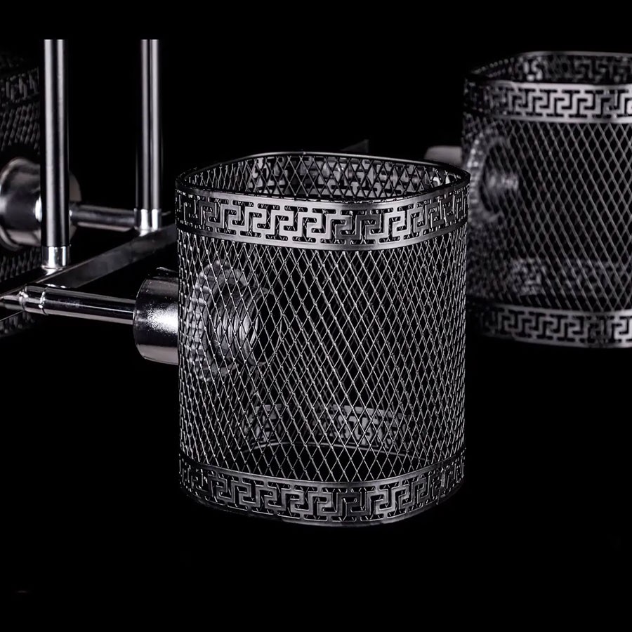 Современная потолочная люстра в стиле лофт на 6 лампочек прекрасно подойдет под стильный и современный интерьер. Каркас люстры окрашен в цвет хром с черным элементам, которые создают контраст на фоне основного цвета. Люстра подойдет для помещений со средними и высокими потолками. Лаконичный дизайн и элементы декора повторяющие формы плафона подчеркнут интерьер помещения. Плафоны данной модели произведены из метала. Патроны типа Е27 позволяют использовать большинство из предоставленных на рынке лампочек. Подойдут лампочки размера G45.