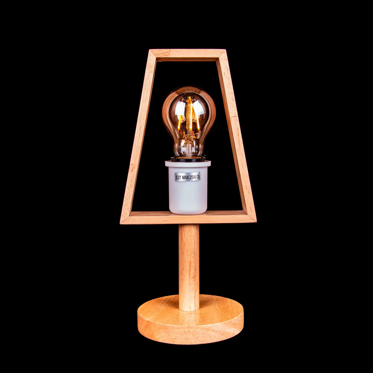 Настольная лампа на один патрон в стиле лофт станет стильным и практичным аксессуаром в комнате. Основание светильника и абажур в форме конуса выполнены из натурального дерева, что создаёт современный и лаконичный дизайн. В данной модели установлен патрон типа E27. Лампа включается кнопкой на проводе и работает от сети через подключение в розетку.