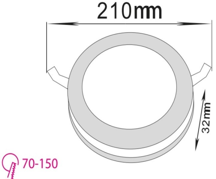 - Размер монтажного отверстия: 70 - 150 мм