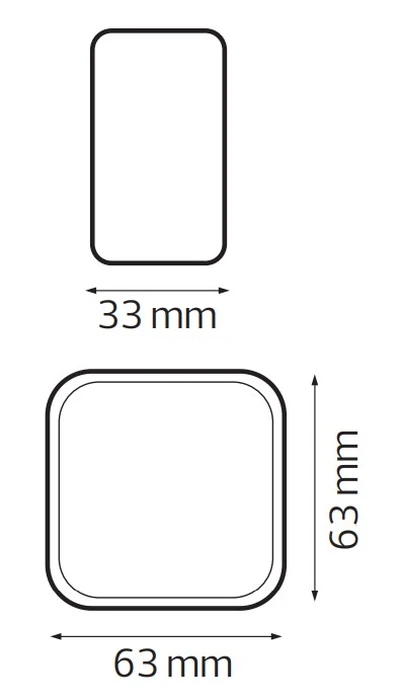 - Размеры (Д×Ш×В): 63 × 63 × 33 мм