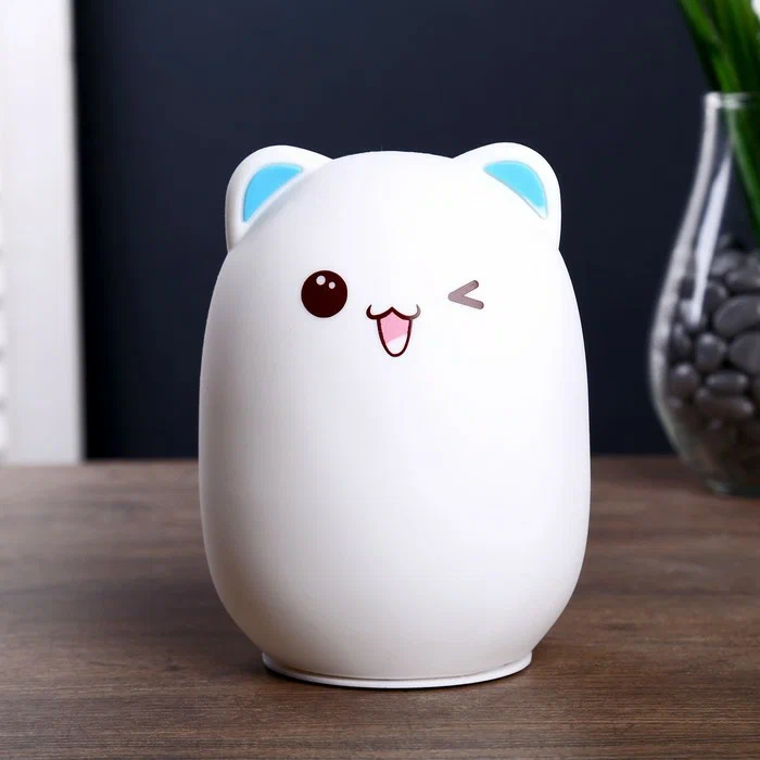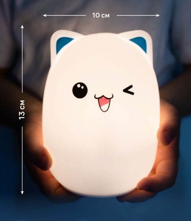 Детский светильник работает как от аккумулятора, так и от сети. Возможность смены цветов. Ударопрочный корпус из мягкого силикона.