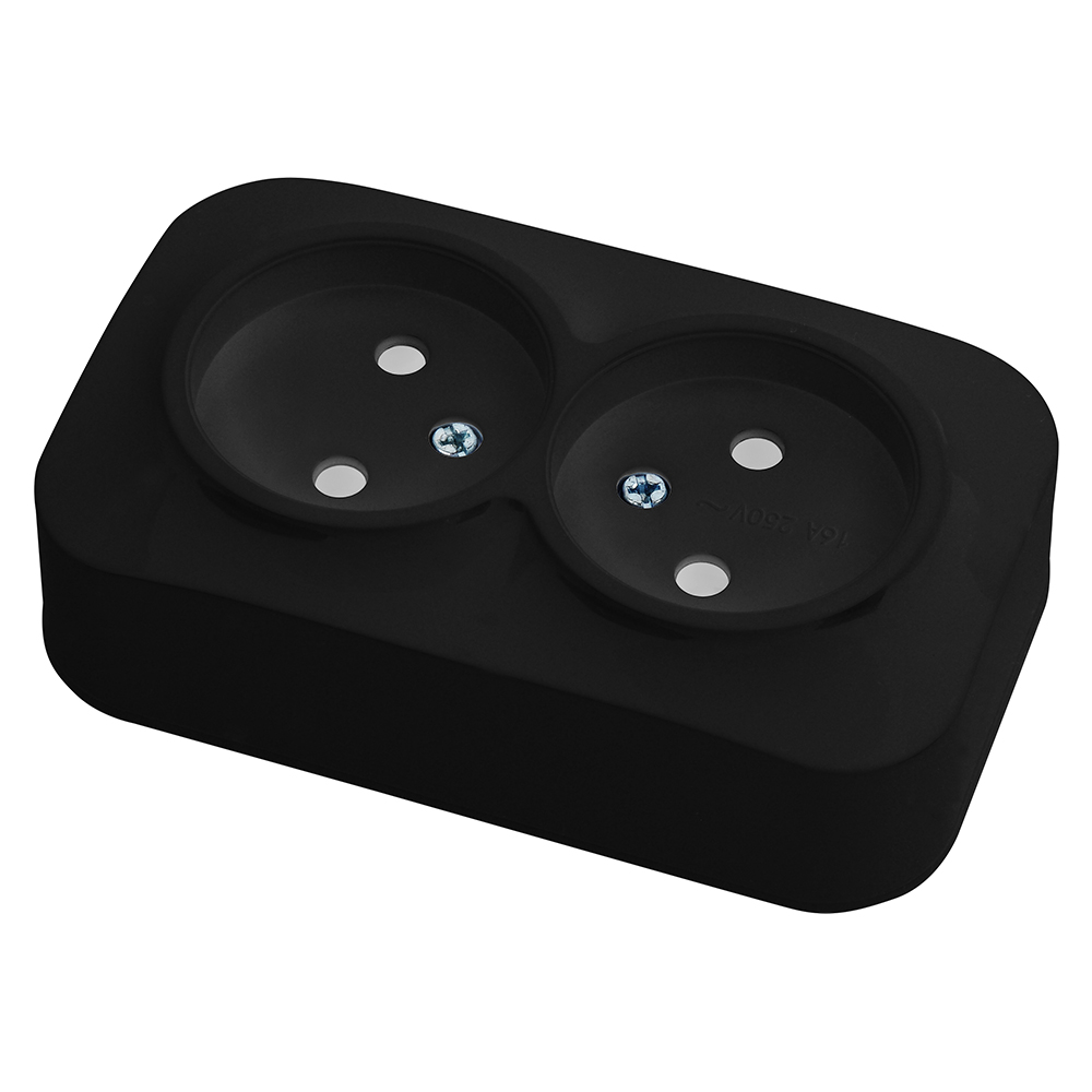 Розетка двойная без заземления черная EVA