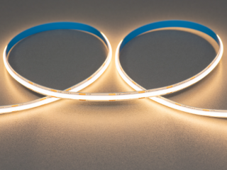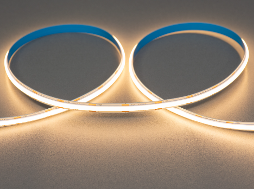 В отличие от классических светодиодных решений, эта led лента выглядит как сплошная световая линия без заметных точек и ослепительных зон. Секрет в технологии COB , которая позволяет размещать диоды плотно друг к другу, а сверху наносить фосфорный слой. В результате получается равномерное сияние по всей длине, которое комфортно воспринимается зрением и выглядит очень эстетично.
